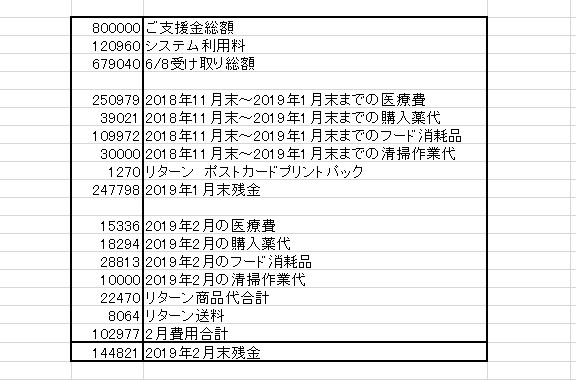 ★★ご支援金 利用状況のご報告★★2019.2.28