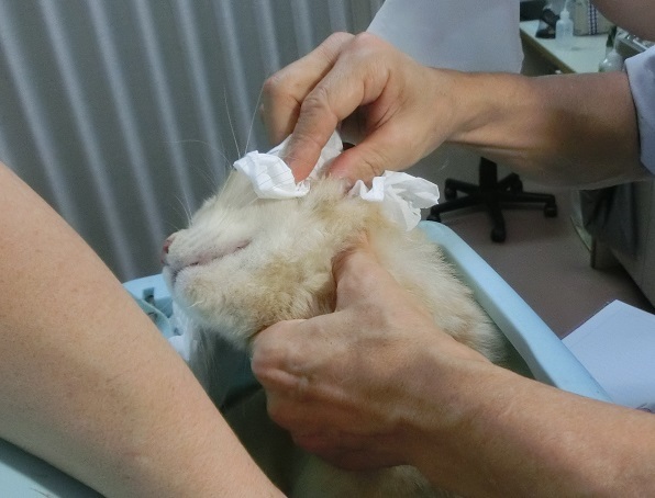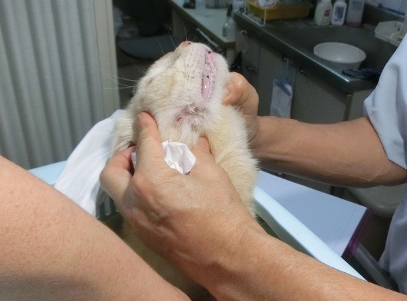 保護したときには、すでに膿はおおかた出ていましたが、動物病院で残りの膿をきれいに出してもらいました。