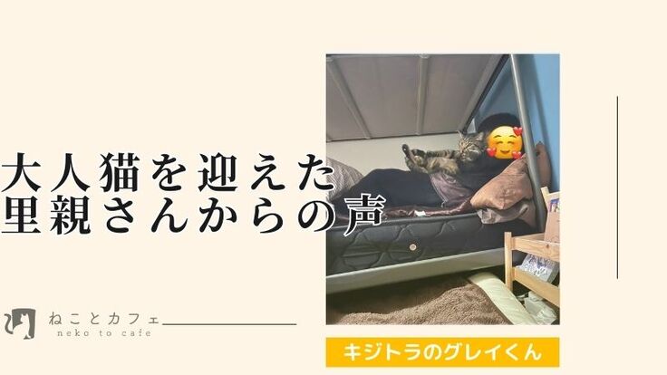 Q. お家にグレイくんを迎えて、印象に残っているお話や、大人の猫を迎えるにあたり、迷われている方へメッセージがあれば教えて下さい。