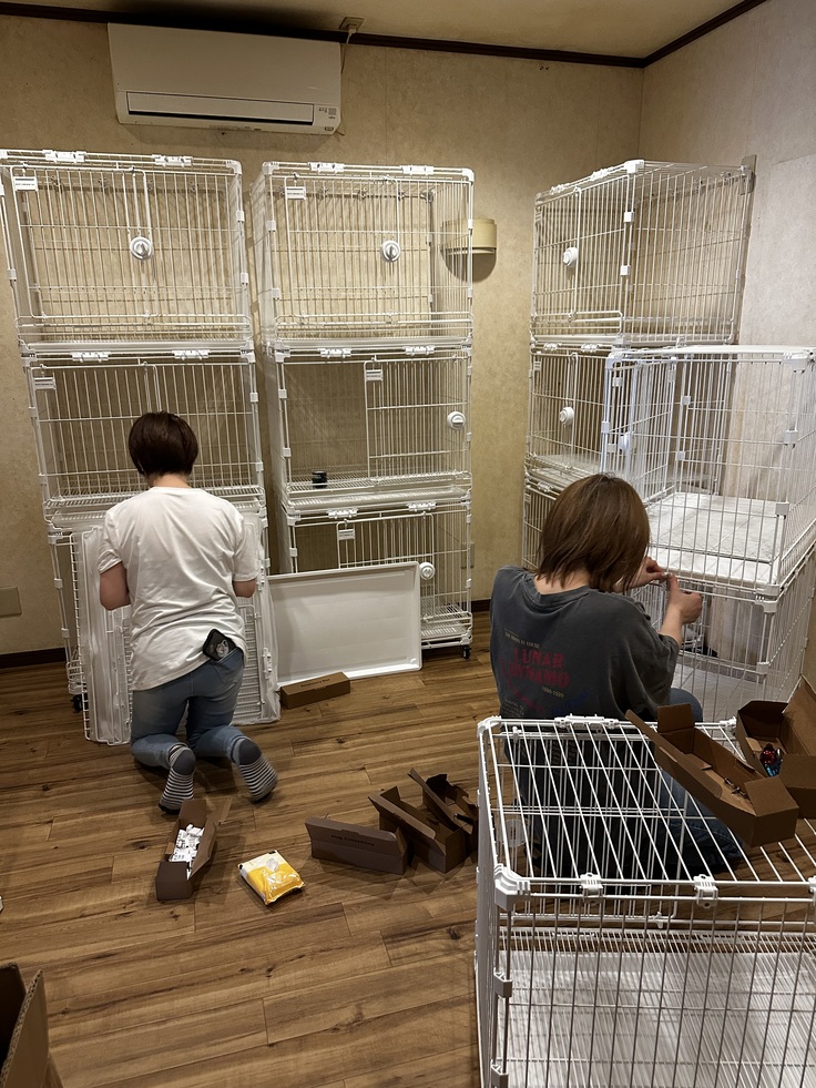 ボランティアさんに協力いただき、猫さんのケージを組み立てました。