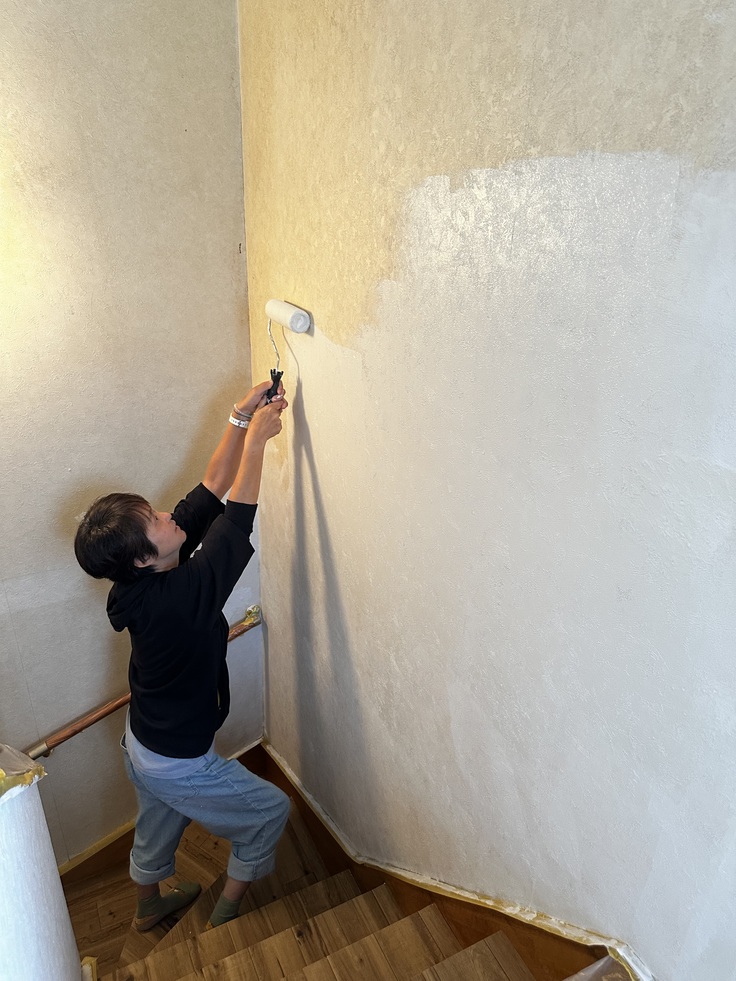 ボランティアさんに助けてもらいながら、壁を塗りました。