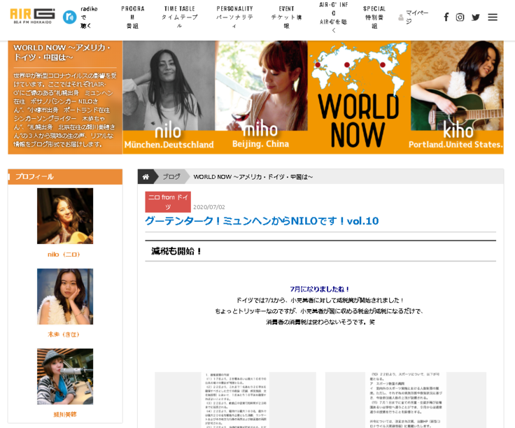 FM Air'G ホームページ内のBLOGでご紹介いただきました