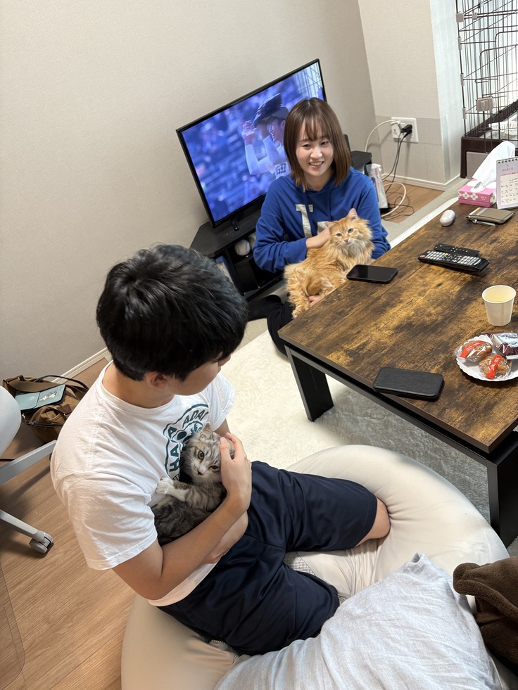 アミーくんはソファの後ろに隠れてしましましたが、しばらくしてソファの後ろから出してご夫婦に抱っこしてもらうとすぐにゴロゴロと言ってくれました♡
