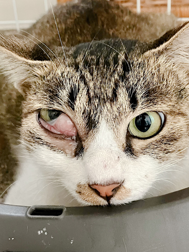 昨日、目に怪我をした猫を保護しました。