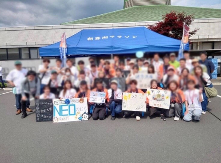 ➨昨年の「朝霧湖マラソン」の学生ボランティア集合写真