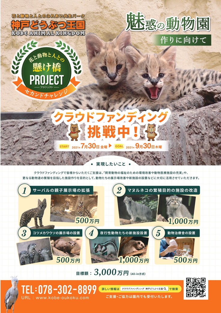 7/31~、神戸どうぶつ王国さんが2度目となるクラウドファンディングに取り組まれていますので、ご紹介させていただきます!