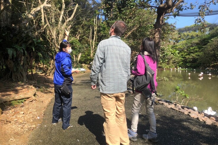 園内を散策しながら、飼育スタッフが鳥や動物たちについて説明したり、ふれあい広場のカピバラ飼育スペースの中にご案内しました。