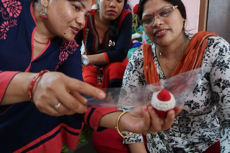 百貨店の雑貨コーナーに並んでいそうなこの作品を作ったのは、充分な教育を受けることができず、読み書きもできなかったネパール人の女性達です。