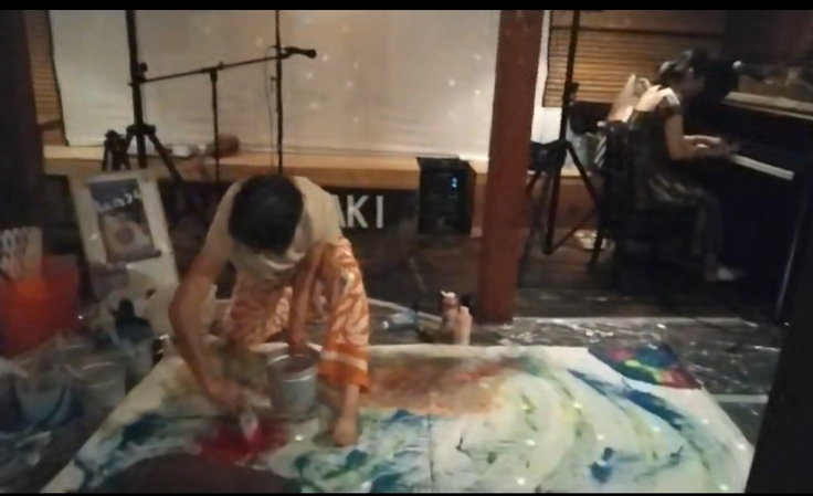 のぶこのライブペインティングと、よっちゃんの即興ピアノのユニット