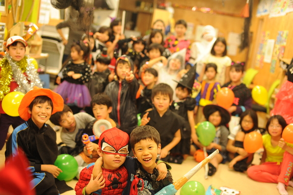 (ハロウィンでは地元の商店街や高齢者施設をまわります。地域との交流も少しずつ深まっています)