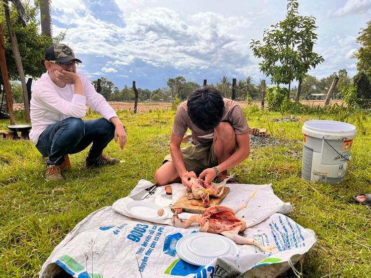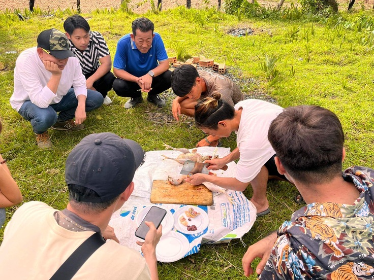 みなさま、驚嘆しておられた様子でした。またカンボジアの地鶏の魅力を感じていただけました。Kumae Stadiumは平飼い養鶏なので、お肉の味、質感がしっかりしています。焼き上がった鶏も美味しくいただけたようで、嬉しかったです。