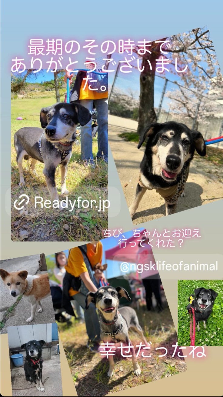 飼い主入院のため工場に取り残されていた4匹のわんこたち。緊急保護され行き場を失っていたがそれぞれの道を歩み出しそれぞれ最期は愛され幸せに天寿を全うすることができた。