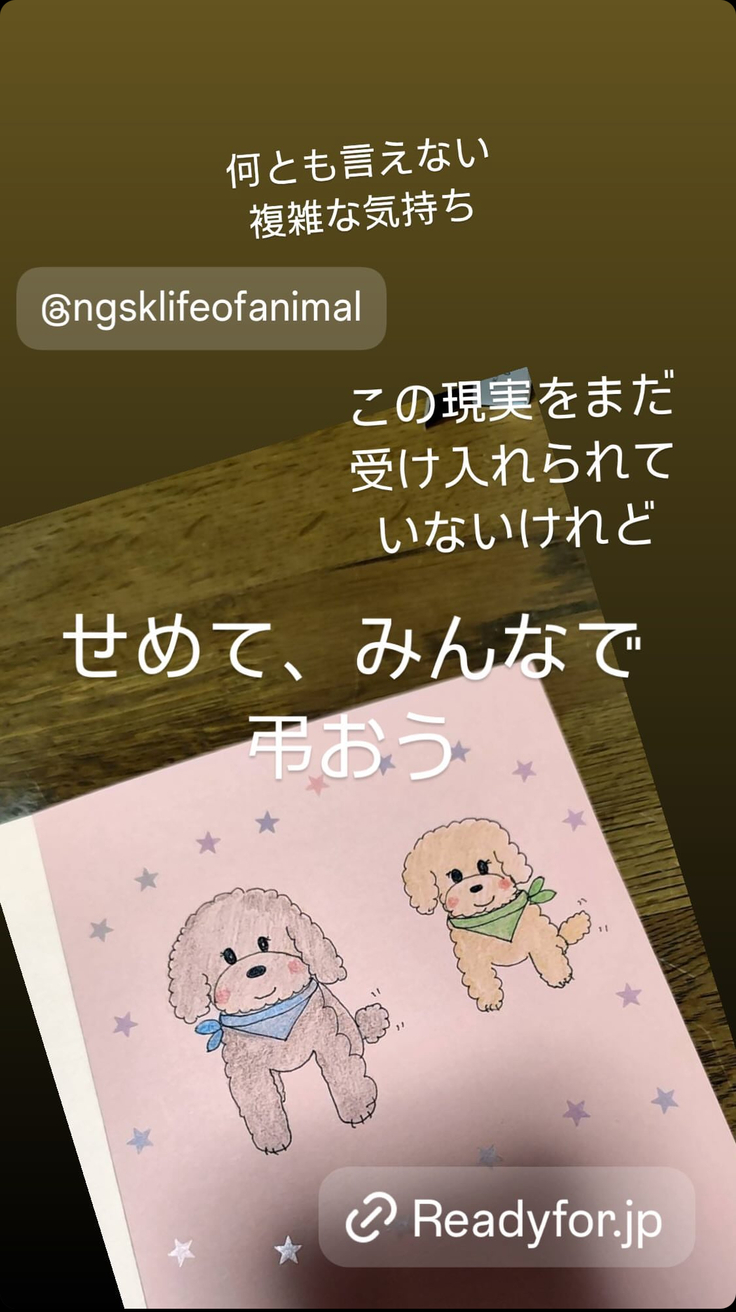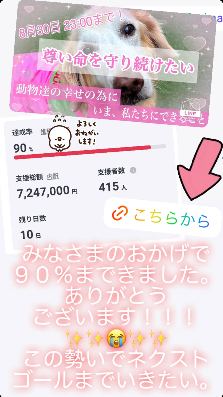 皆さま、長きに渡り、あつい応援📣声援、ご支援、ご協力本当にありがとうございます。毎日涙と汗と鼻水と犬たちにまみれながら応援メッセージを大切に読まさせて頂いています。😭✨
