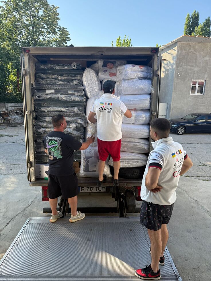 ベッド、マットレスなどの大型物資を含む大量の物資の積み込みには多くのスタッフの協力が必要です。ご覧のように、プロの手にかかれば、こんなにきっちりと隙間なく詰め込むことができます。