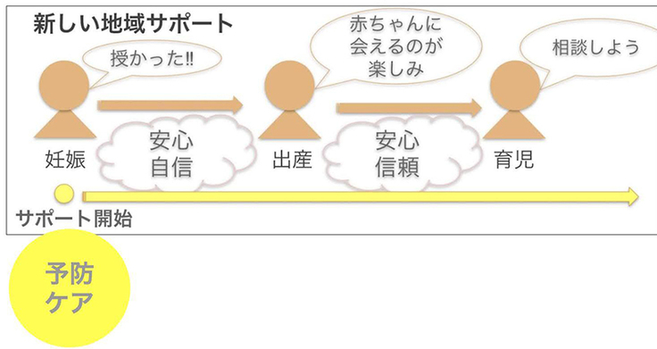 病に陥った後では「後追いケア」となるため、不調や不安が解きほぐれるまで時間を要します。病に陥ってしまう前に「予防的ケア」ができる社会が、これからの新しい産前産後支援の在り方に必要ではないでしょうか。