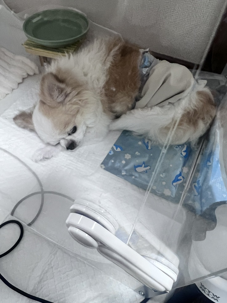 先日の術前検査後の休薬で、ニーノの体調があまりよくないことはお伝えしたかと思います。これまで利尿剤など薬で抑えていた心臓への負担が一気にかかっているのか、昨日の夜は久しぶりに酸素室で咳をしていたので心配で思わずニーノの元へ駆け寄ってしまいました。