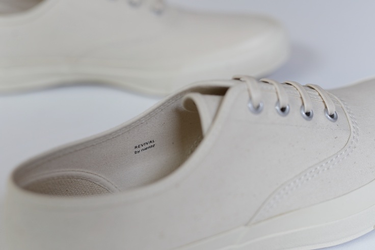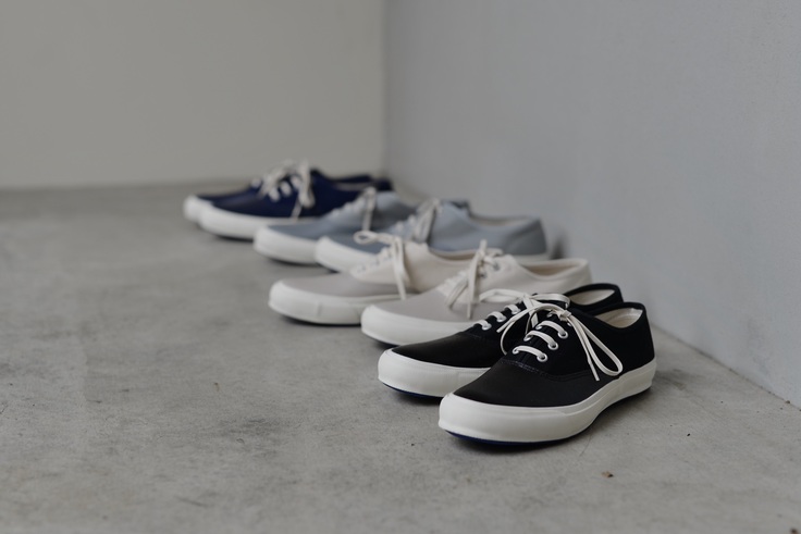今回復刻するDECKSPORTは、ブラックモノとナチュラル(生成り)の2色展開。奇をてらわず、服装にあわせやすいド定番の2色にしました。また、通常の製品よりも目の細かいキャンバス生地を採用することで、柔かく包み込むような履き心地と見た目の上品さを演出しました。