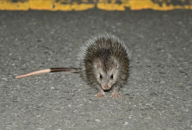 絶滅危惧種ケナガネズミ、太い尻尾が特徴的です。(提供:NPO法人 どうぶつたちの病院 沖縄)