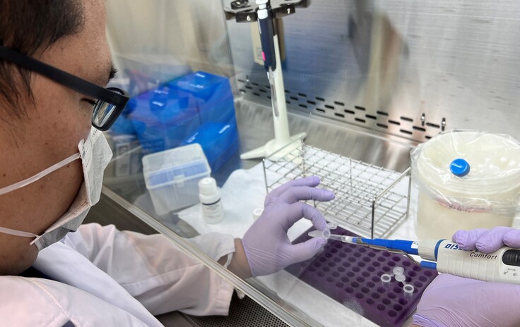 まず、絶滅危惧種カンムリワシの細胞からDNAを綺麗に取り出す作業を行っていきます。