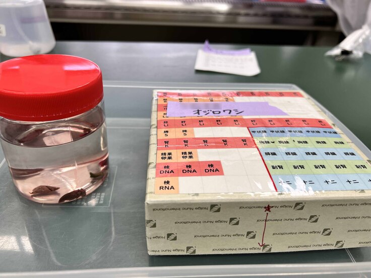 猛禽類医学研究所からオジロワシの試料(各種臓器、細胞培養用皮膚)が届きました