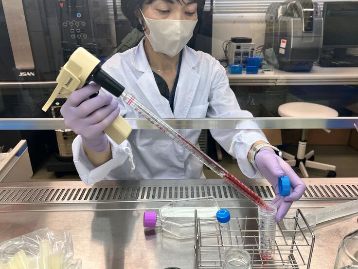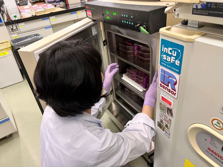 それを培養液の中入れ、インキュベーターと呼ばれる保温庫でi温めてあげると…