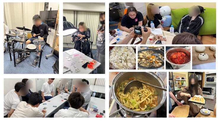 最近、見学者も増えてとても賑やかです!若者たちと手作りパンやジャム、コンソメスープを作りました。みんなで料理を作る機会の大切さを感じました。夜は楽器の練習会やお絵描き、アクセサリー作りをしている子の新商品の撮影会を行いました。