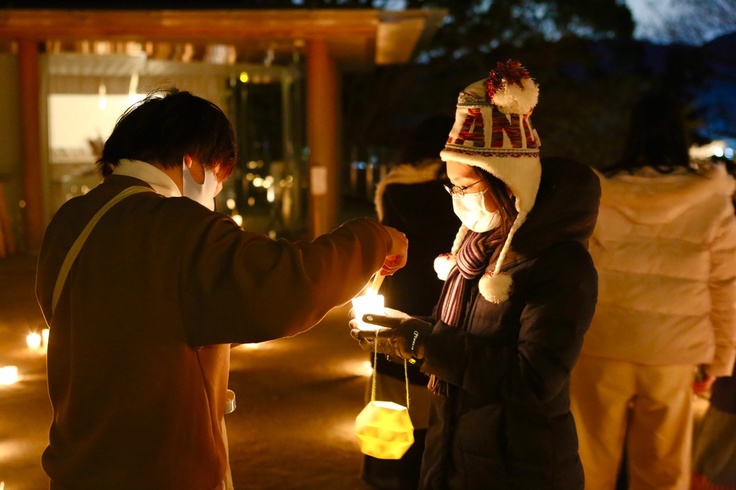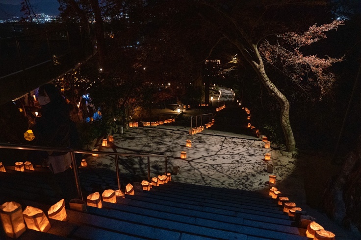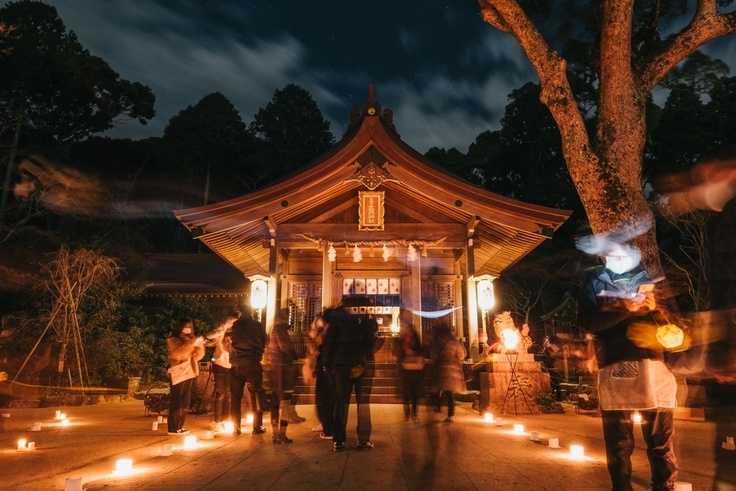予定通り、竈門神社境内の一体を約5,000個のキャンドルで灯しました。正直、その準備はには骨が折れました(笑) が、その甲斐がありました!