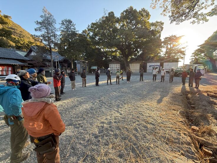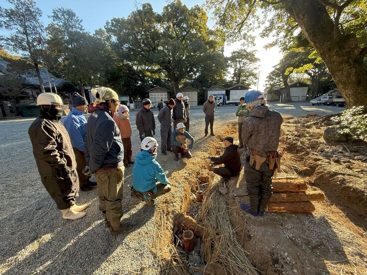この作業が今回の施工の出来栄えを左右するとのことで、参加者全員耳をダンボにして傾けます