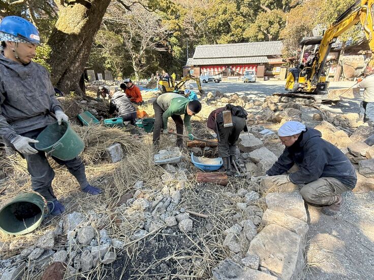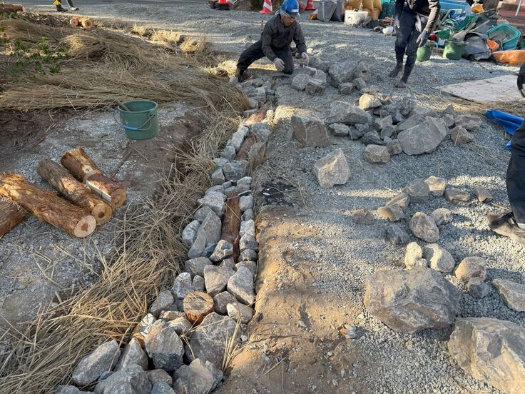 さらに、御神木の根っこ部分も石を畳んでいきます!
