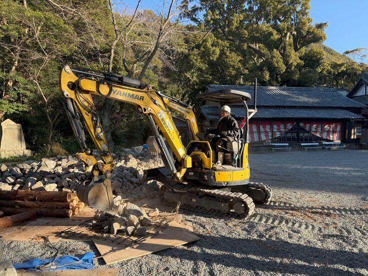 二日目は大きな石を大量に使うため、重機が大活躍!オペーレータも休む暇なく石を運びます