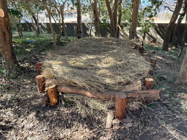木の根の部分や地形からみて谷となる部分の土を取り、本日もマウント(しがら)を