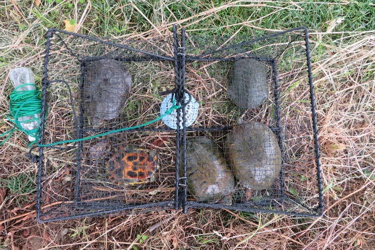 捕獲器内に投入しておく餌はバナメイエビとかいう外国産のエビですがスーパーで安く買えるのを使用し合計で18匹のアカミミガメを捕獲しています。