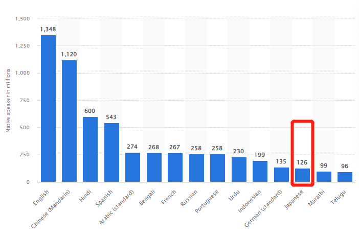 statista 「The most spoken languages worldwide in 2021(世界で最も話されている言語)」より