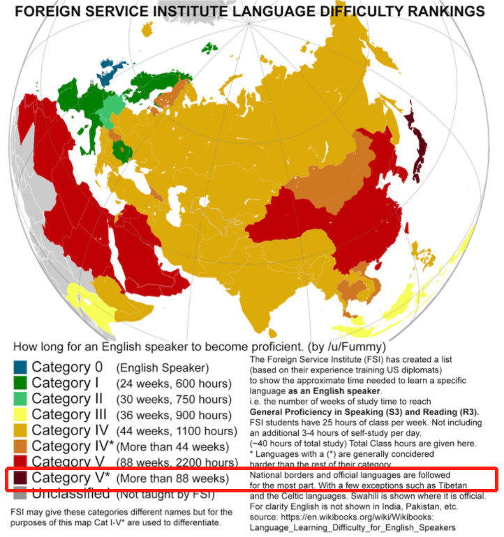 *アメリカ国務省・難易度言語ランキング