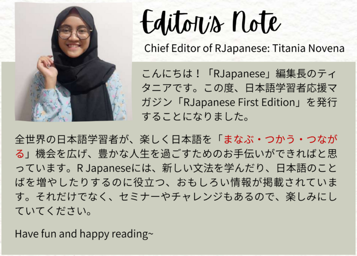 Titania Novena (ティタニア):インドネシア国立ディポネゴロ大学日本語学科卒業 / 日本語学習者応援マガジン「RJapanese」編集長