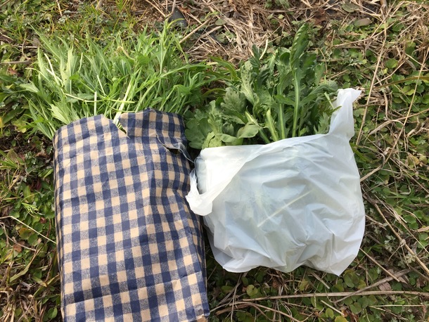 午後は別の所で巣箱を設置し、水菜と春菊を戴きました。