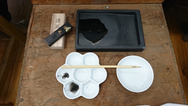 筆の他にも墨、和紙、筆の持ち方、線を描くスピード、作業中の精神統一に至るまで、全ての要素にこだわり、調整を重ねた上で描き始めます。