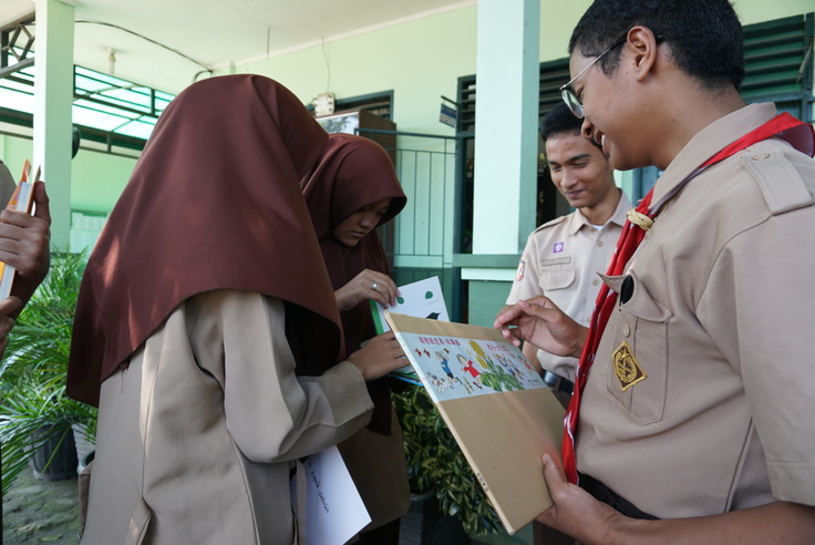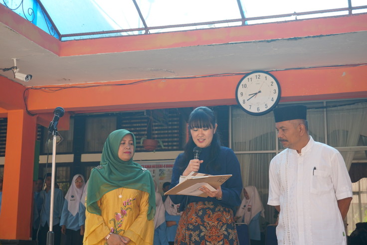 急な変更だったため、25日にSMKN 3 Paramanの校長先生が出張で不在だったため、副校長先生に本を渡し、校長先生への手紙も読みました。