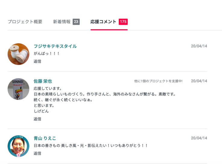 ・サイトに個人サポーターメッセージを掲載(希望者)