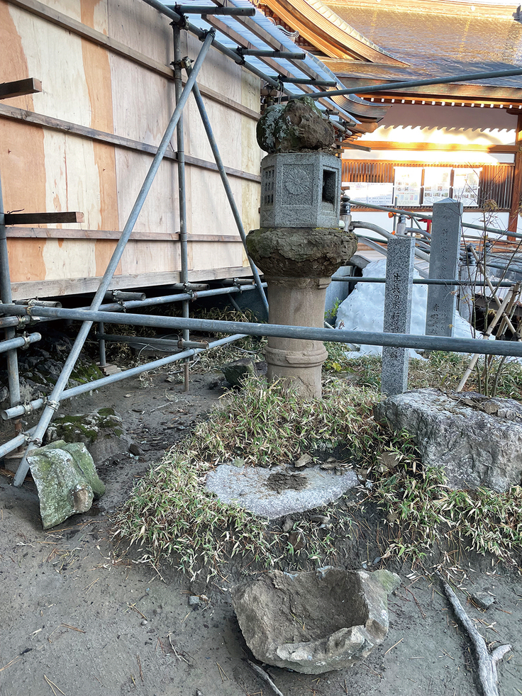 しかしながら屋根銅板も年数が経ち、繰り返し大切に修理してきましたが、損傷が目立つようになっておりました。そして令和6年(2024年)1月1日に発生した「令和6年能登半島地震」の影響でついに限界を迎え、本殿と随神門の屋根銅板は割れて亀裂が入り、さらに雨漏りするようになってしまいました。また、境内の石灯籠も一部崩壊するなど多大な被害を受けました。