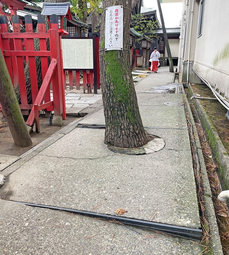 「境内には、歩き始めて間もない小さな子どもから、杖をついて歩かれるご高齢の方まで、様々な方が境内を通られます。故に、誰もが安心して過ごせる憩いの場でないといけない。」と、宮司は強く思っています。この思いに賛同し、誰にとっても気持ちよく参拝できる環境整備ができるよう「被災の修繕を応援する会」がこの地震を契機に立ち上がりました。