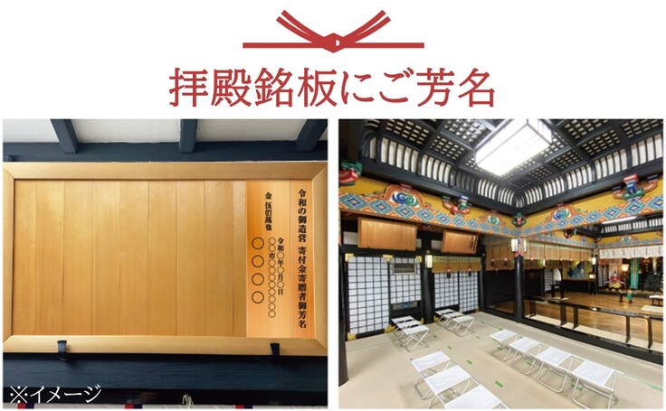 ▲もっとも大神様に近い拝殿に、50年100年先までご芳名が掲げられます。