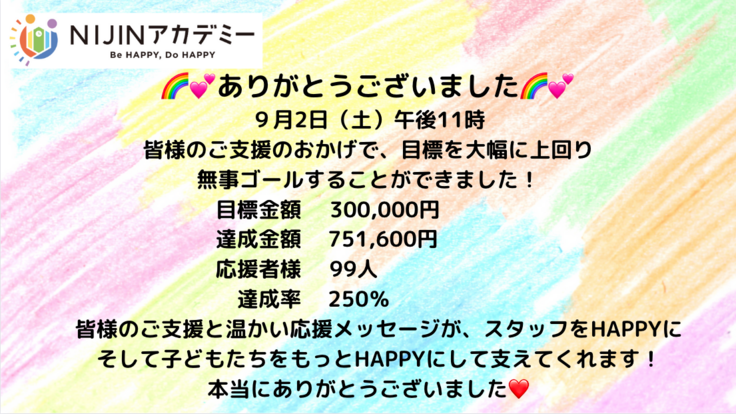 本プロジェクトにご賛同いただき、ご支援いただきましたこと、スタッフ一同感謝申し上げます。