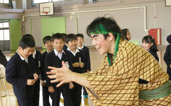 (小学校公演。元気いっぱいの小学生と保護者様約500名の方に見ていただきました。)