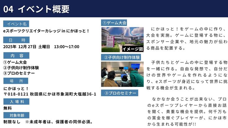 ■オフライン大会日程:2025年12月27日 時間:13時から17時 場所:にかほっと!フードコート広場