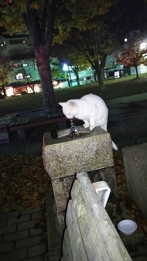 メンバーの一人がたまたま通りがかって見かけたのが最初でした。「野良猫⁉らしきやせた白猫がいたので気になってその後見に行ってみら、公園に10匹かそれ以上の野良猫⁉がいたのです。みんな子猫みたいで多分一年未満と思われる大きさででも中には太ったのや首輪してる猫もいるので全部野良猫じゃないかもしれません。」という事でさてどうしようという事になりました。