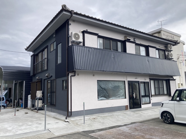 ☝外観①建物向かって左側土間手前はテラス席やキャティオ計画中