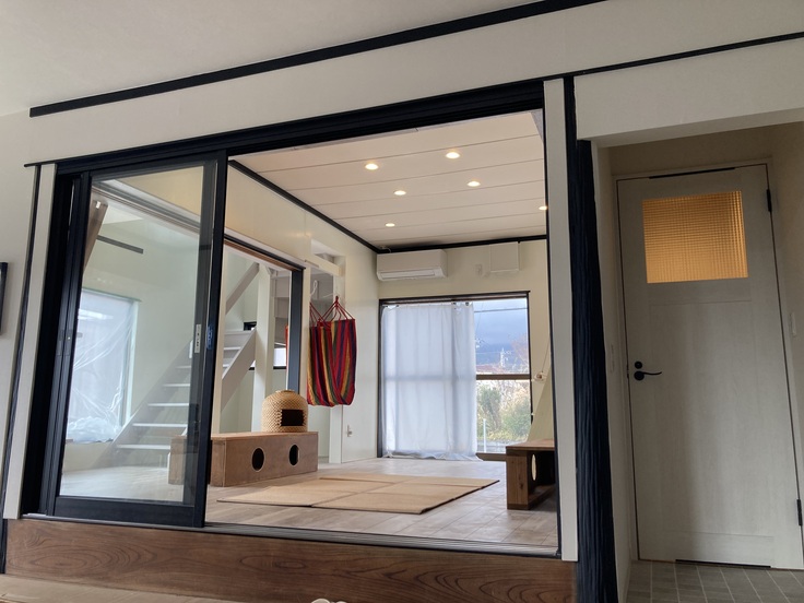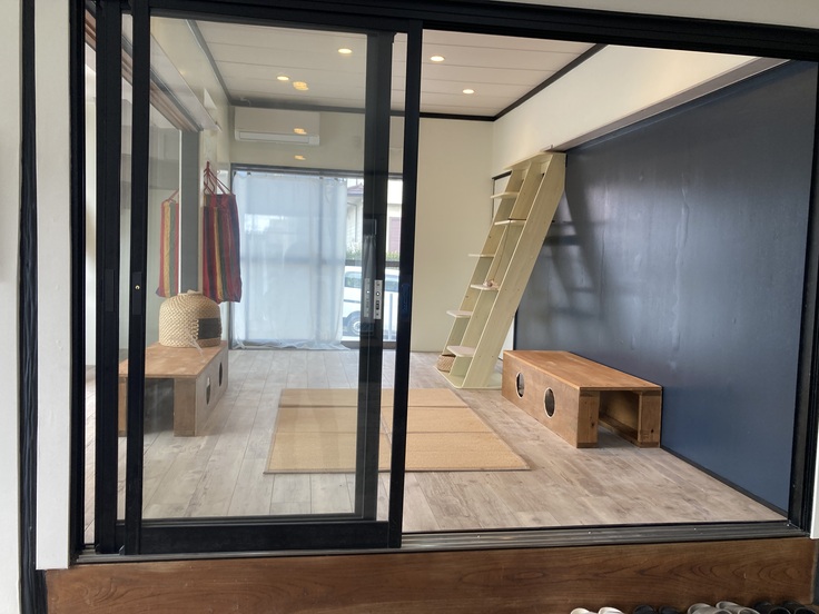 2階の保護猫管理スペースと1階保護猫スペース、外構工事が完了しております。