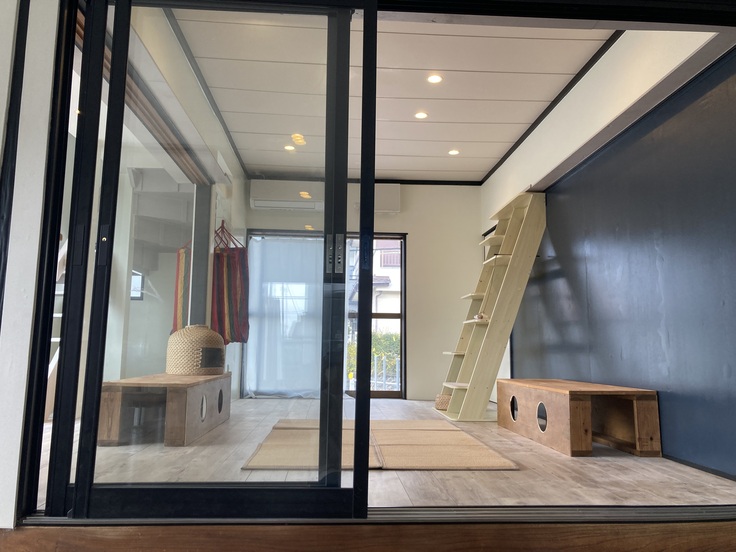 2階の保護猫管理スペースと1階保護猫スペース、外構工事が完了しております。