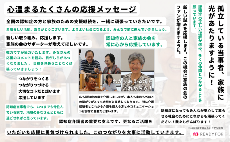 終了は11月18日(金)23時です。それまでにできるだけ当会の情報を広め、認知症の人やそのご家族、周囲の方々に当会の活動を知っていただきたいと考えております。